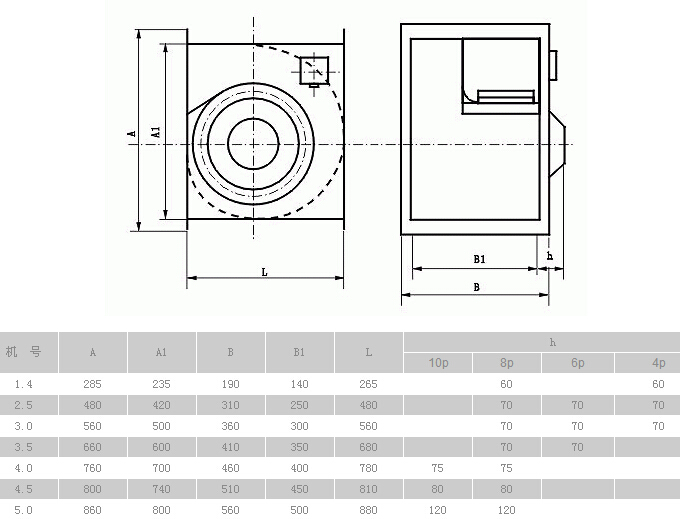注:風機的性能參數及結構尺寸,本公司若有變更,恕不另行通知。