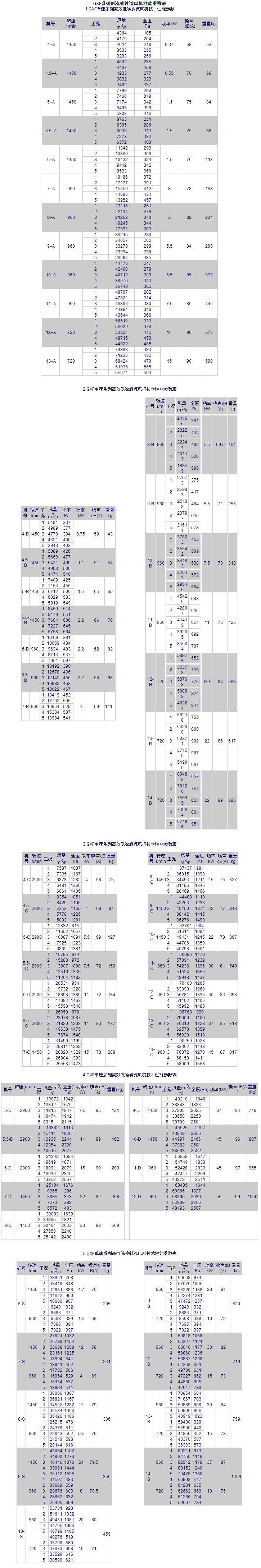 1.GXF單速系列高效低噪斜流風(fēng)機(jī)技術(shù)性能參數(shù)